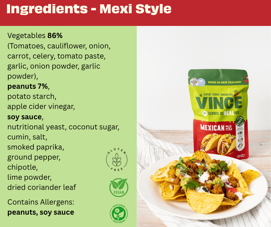 - Mexican Style – 6 x Mexican 100g pouches. Mild and family-friendly with chipotle, smoked paprika and a hint of lime. Perfect for tacos, nachos and burrito bowls.